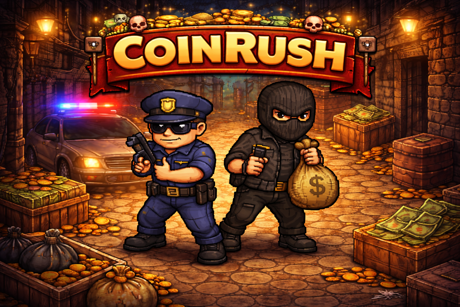 Colete as 4 moedas espalhadas pelo mapa antes que o tempo acabe. No computador, use as teclas W, S, D e A ou setas para se mover rapidamente e desvie dos policiais. Encostar em qualquer policial ou deixar o tempo zerar resulta em derrota imediata.